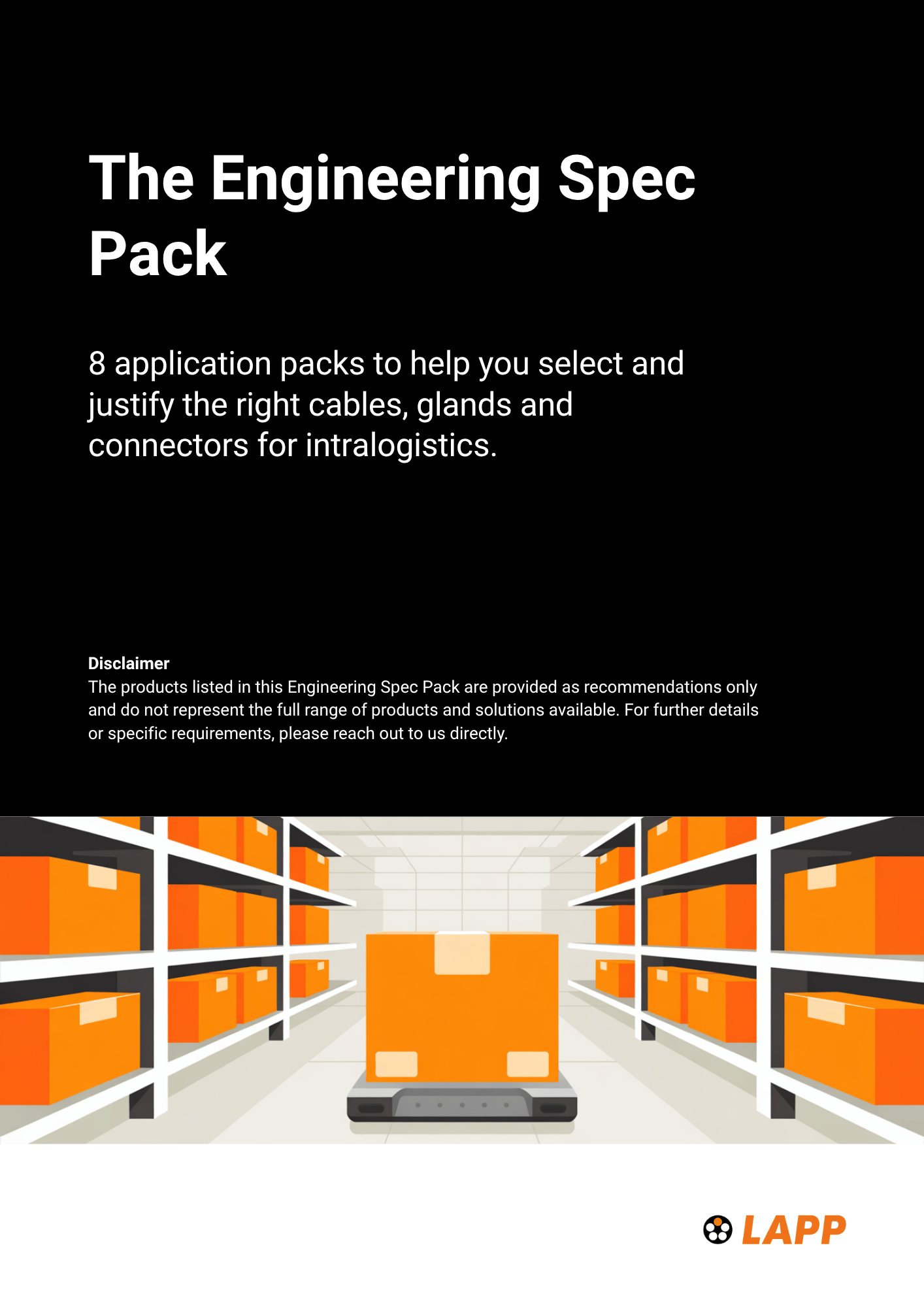 The Intralogistics Engineering Spec Pack — 8 application packs that tell you the dominant stress, the recommended LAPP solution, and the datasheet features that back it up. -